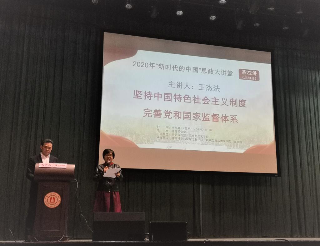 本科生主讲题为《坚持中国特色社会主义制度 完善党和国家监督体系》的“形势与政策”课,讲座由材料科学与化学工程PG官方电子网