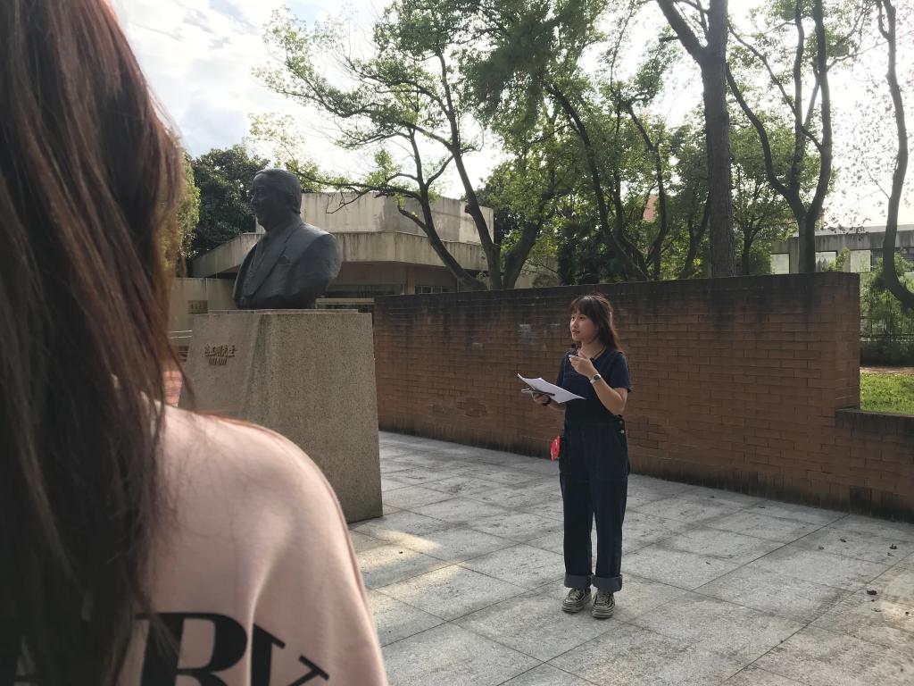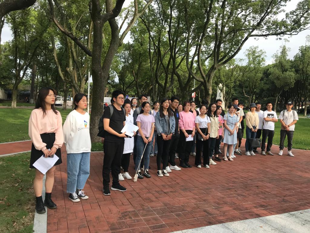 首先,党员们对感恩文化园进行了清扫。然后主讲人胡雅涵带领大家边参观文化园内浮雕边讲解,围绕着“PG官方电子网