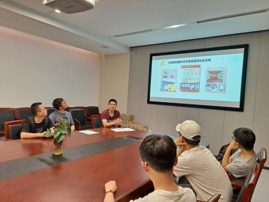 研究生高分子材料党支部书记徐月超为三个支部共三十余名党员上题为“寻红色足迹,听党史故事”的党课。徐月超的讲解不但为同志们第二天参观宁波地委旧址纪念馆做了预热与铺垫,更让党员同志明白,作为新时期的先进青年、先进大学生,应该在生活中克勤克俭,严格要求,以高尚的道德情操强化党性修养;在工作中身先士卒,勤勤恳恳,不断增强贯彻党的基本路线的自觉性;在学习上,以“书山有路勤为径,学海无边苦作舟”的精神,加强科学文化知识学习,争取在建设社会主义现代化强国的过程中建功立业。这不仅是一种政治责任,也是一种精神追求。