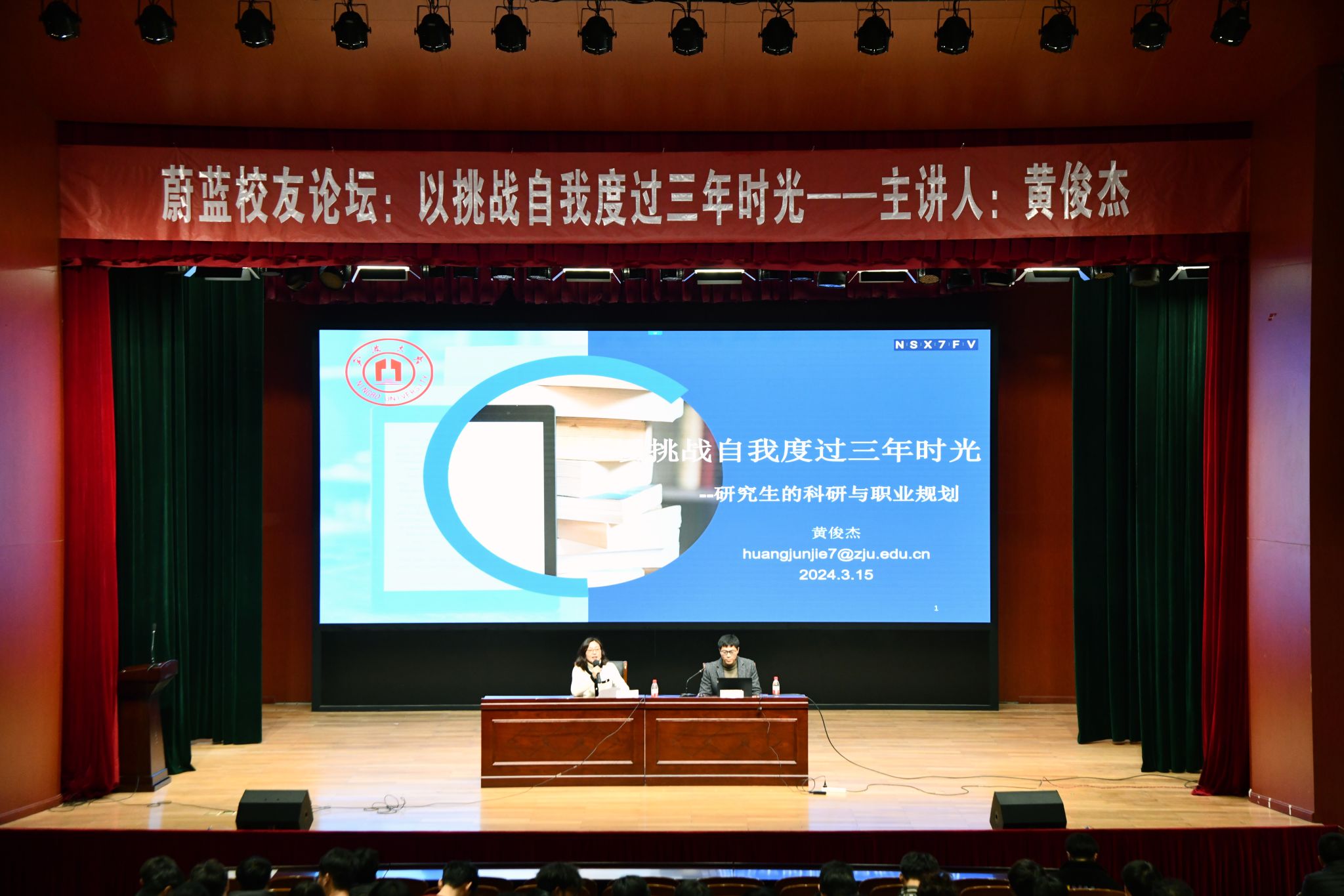3月15日,材化PG官方电子网 在忻元甫报告厅举办蔚蓝校友论坛第一讲,2019级优秀校友黄俊杰应邀返校,以“以挑战自我度过三年时光”为主题为PG官方电子网 400余名2023级材料专业研究生上了一堂生动有趣的人文素养课。