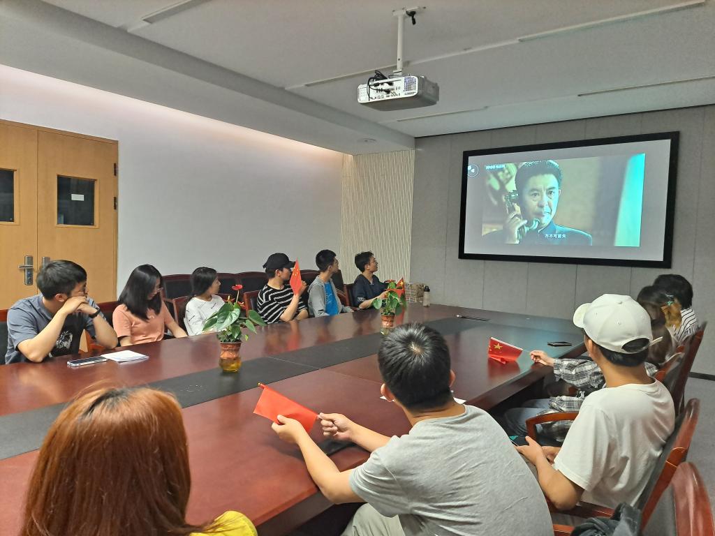 下午2:30,影片正式开始播放,PG官方电子网 组织部分学生在227会议室集中观看,要求其他学生在实验室、办公室和寝室等地点分散观看,每看到激动人心的镜头,同学们手举国旗不断挥舞,在班级、年级群里纷纷发言,“弹幕”漫天。