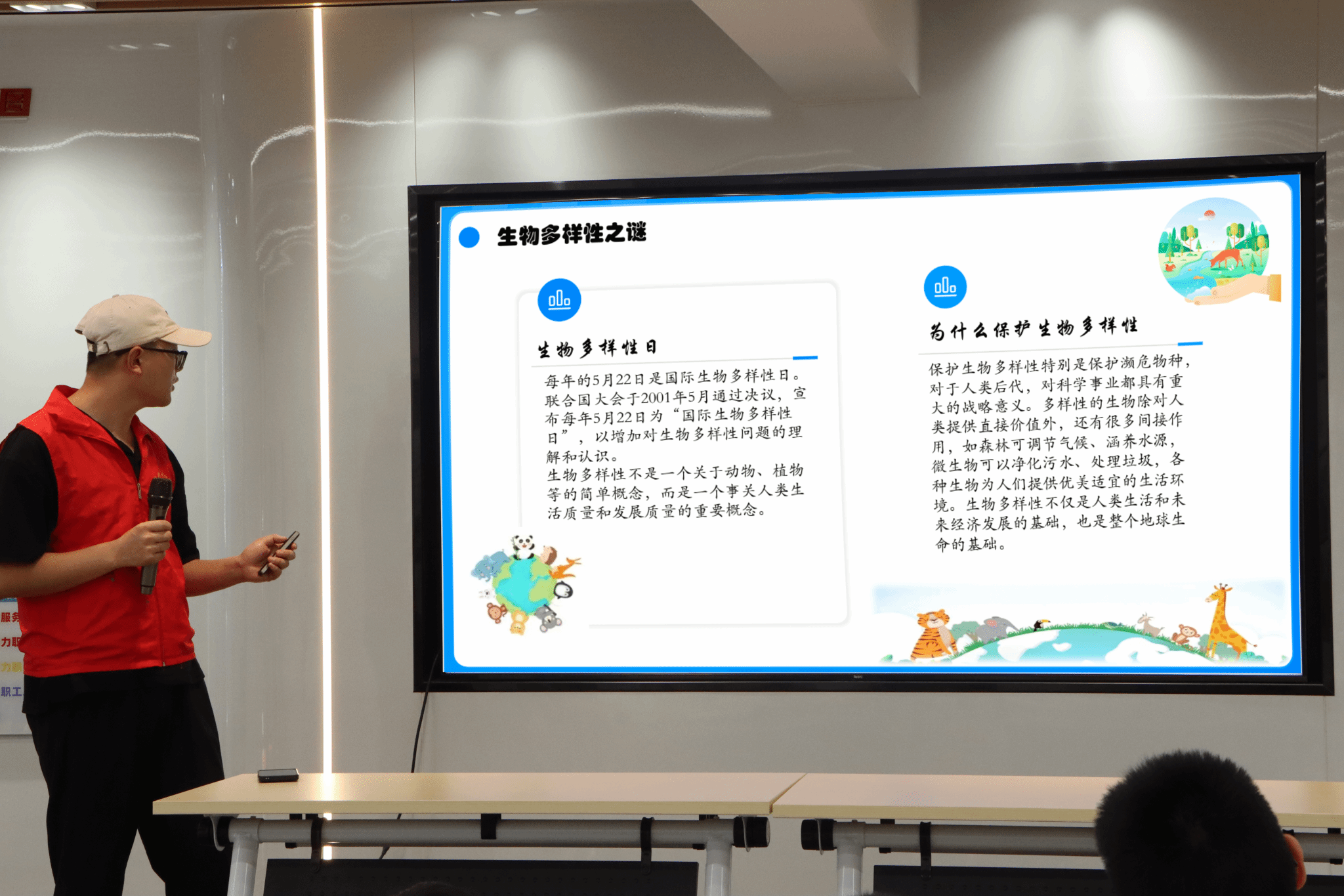 活动以沉浸式环保课堂拉开序幕。志愿者通过动画视频与趣味问答,向孩子们讲述国际生物多样性日的由来与意义。针对“双碳”目标,科普团设计情景模拟游戏,引导小朋友计算家庭碳排放,并通过垃圾分类竞赛实践减碳行动。