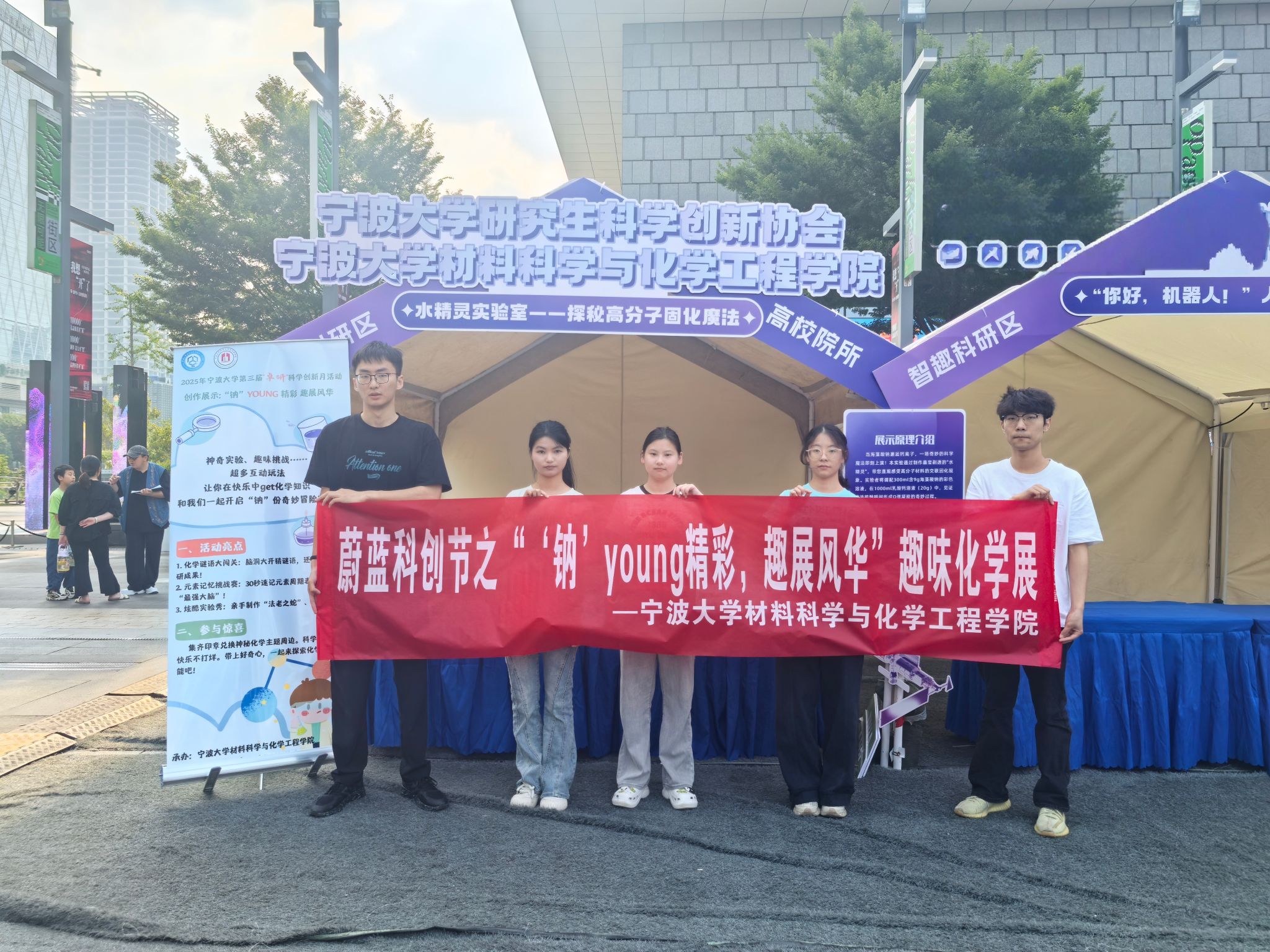 5月24日,2025年宁波市科技活动周开幕式在宁波文化广场举行。材化PG官方电子网 联合PG官方电子网 研究生科学创新协会参与开幕仪式及科创集市,开展“‘钠’young精彩 趣展风华”趣味化学展科普活动,旨在通过趣味实验演示、化学知识问答等形式,展示科技创新最新成果,传播科学精神。