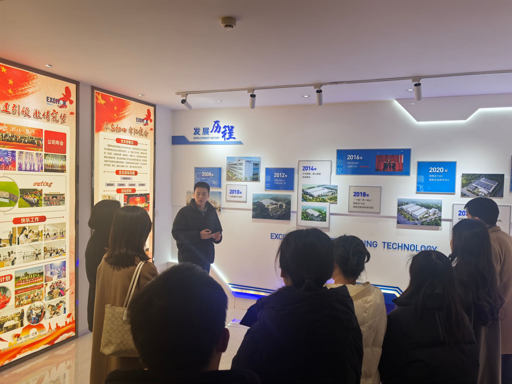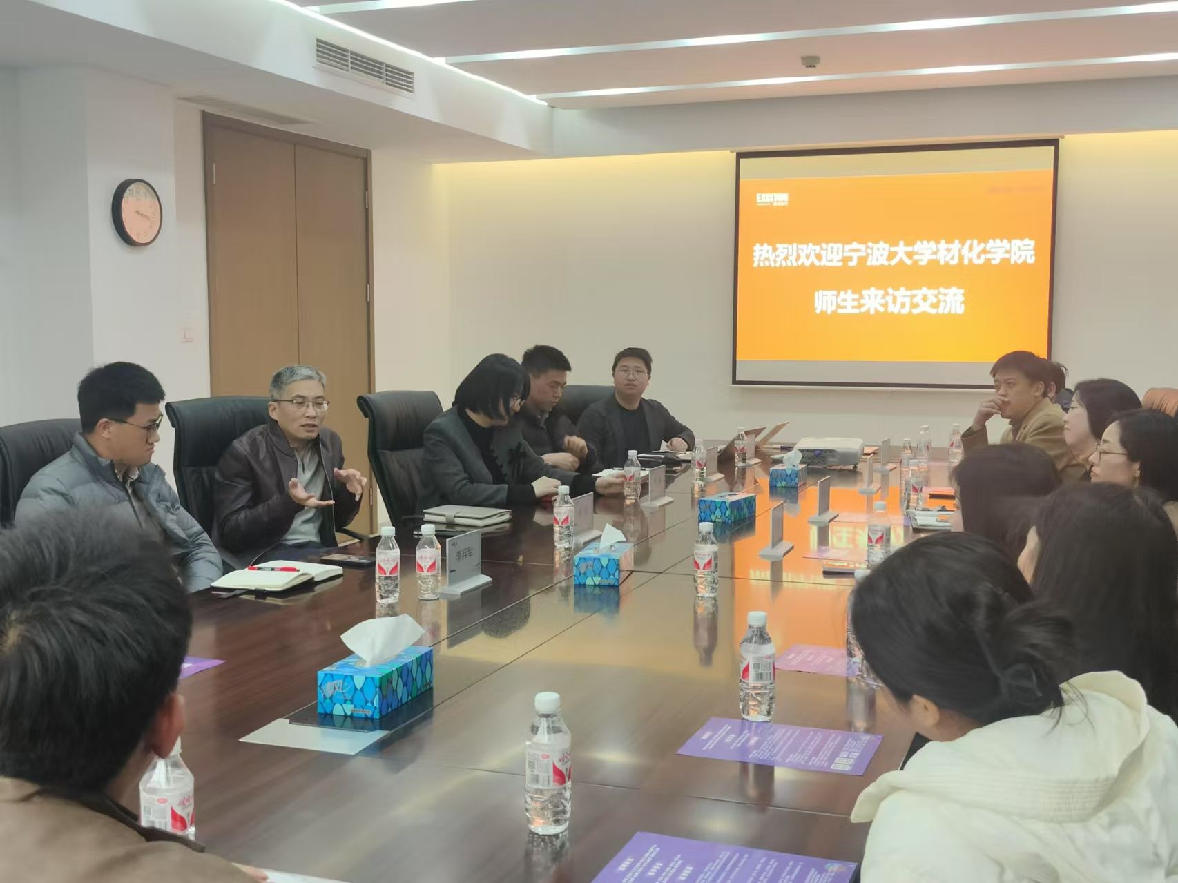在公司负责人带领下,材化PG官方电子网 一行参观了公司展厅,叶志鹏校友详细介绍了公司的发展历程、产品种类、研发流程等情况。随后,校企双方就产学研合作、党建共建等内容和同学们关注的职业发展路径、公司人才培养体系、职业发展前景等问题进行了深入的座谈交流。