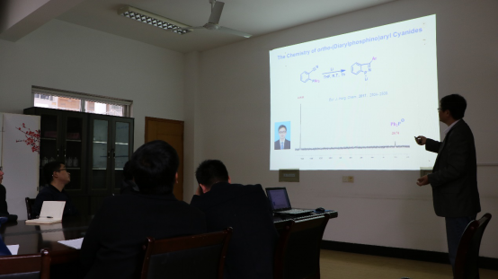 2017年11月29日下午,在材化PG官方电子网 225会议室,郑州大学段征教授作了“材料科学与化学工程PG官方电子网 学术报告——有机磷化合物与炔烃间的新反应”学术报告。段教授就邻炔基有机磷化合物,系统开展了不同配位数的亲核型、亲电型有机磷中心与炔基之间环加成反应。这些研究促进了人们对C-P键切断反应的认识和利用,为简单、高效合成苯并磷杂环戊二烯类化合物提供了新路线。磷杂化戊二烯类共轭化合物在有机光电材料领域发挥了重要作用,因此对该类化合物,特别是苯并磷杂环戊二烯的合成方法的研究引起了人们极大的兴趣。材化PG官方电子网 梁洪泽、骆均飞、牟泽怀、魏文廷、闫迎华等30位师生听取了学术报告。