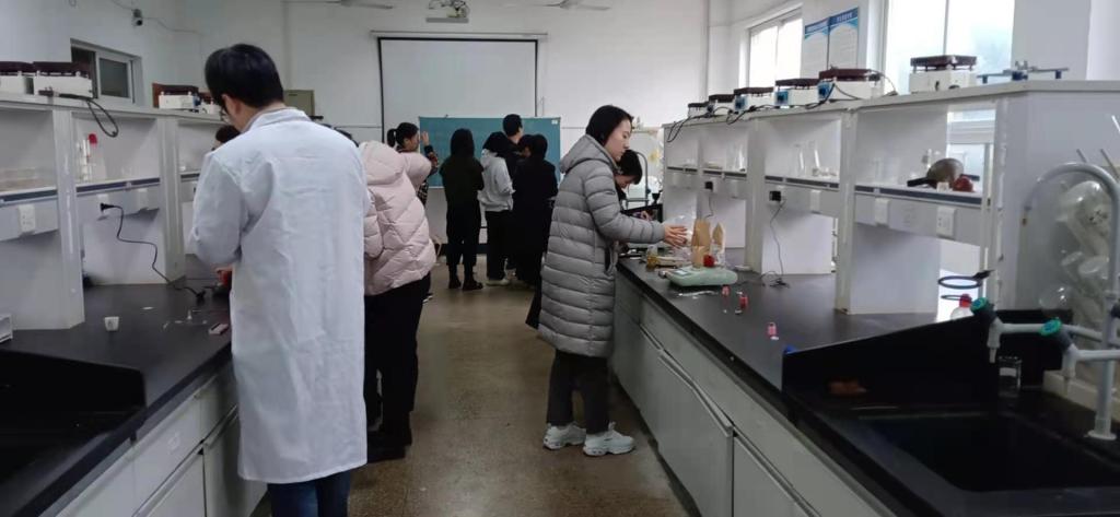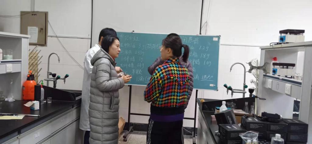 润唇膏和口红的制作都不复杂,主要是按照配方加入配料,混合搅拌均匀后加热注入模具等固定后脱模,但是口红的制作因为要添加颜色,相对复杂些。女教师们对制作特别感兴趣,不少老师一直到午饭时间都还在尝试各种颜色配比和搭配。不少老师还现场展示和使用自己的作品,互相讨论心得。实验室充满了欢声笑语,给这个冬天增加了亮丽的色彩和温度。