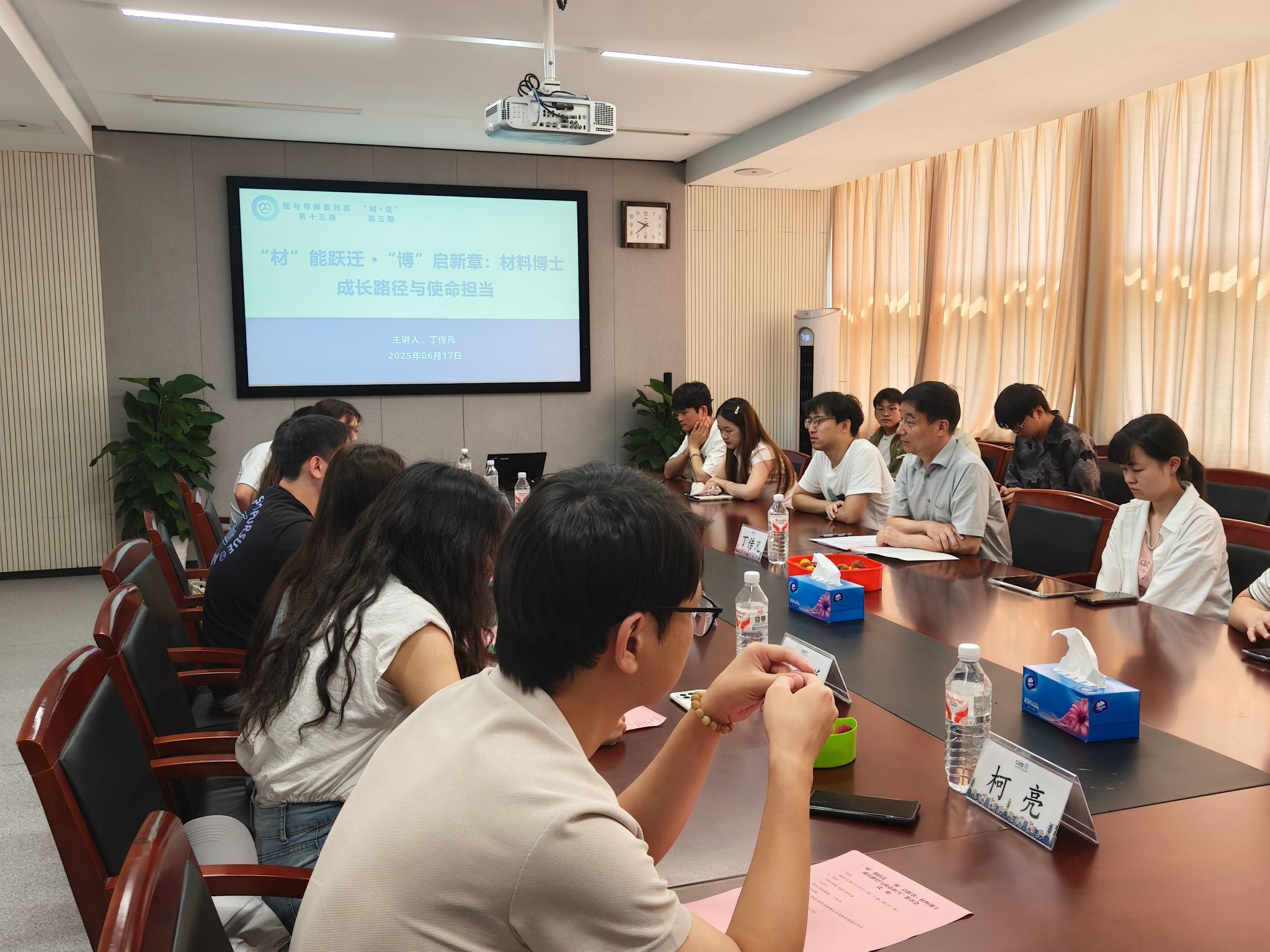 品牌文化活动“材·说”系列活动之一,让同学们在与导师的互动中收获了知识、经验和启发。同学们对博士的成长路径和使命担当有了更为清晰的认识,也更加坚定了在学术道路上不断探索、追求卓越的决心。
