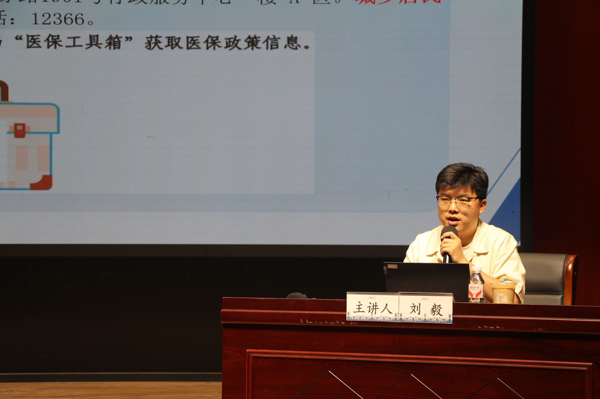 辅导员刘毅联袂主讲,为新生深入解读大学生意外伤害综合保险和宁波市大学生医保政策。