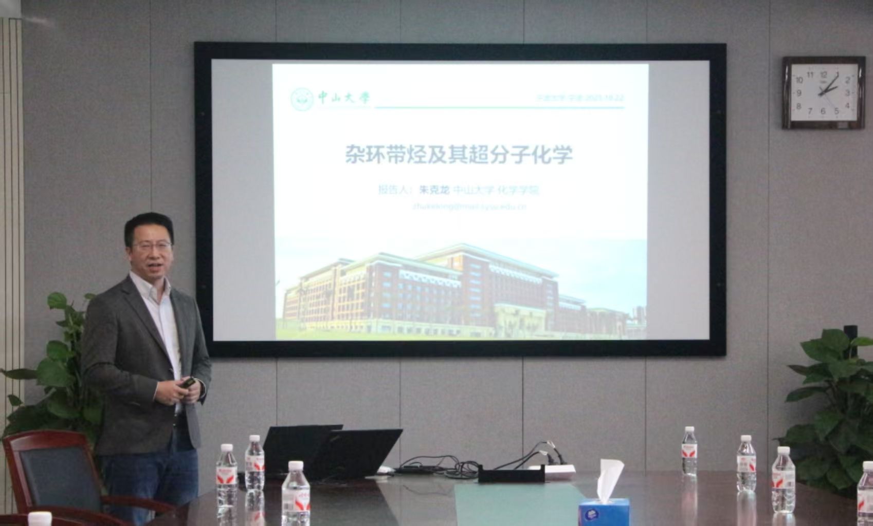 朱克龙教授担任主讲,作题为《杂环带烃及其超分子化学》的专题学术报告,吸引了众多师生到场聆听。