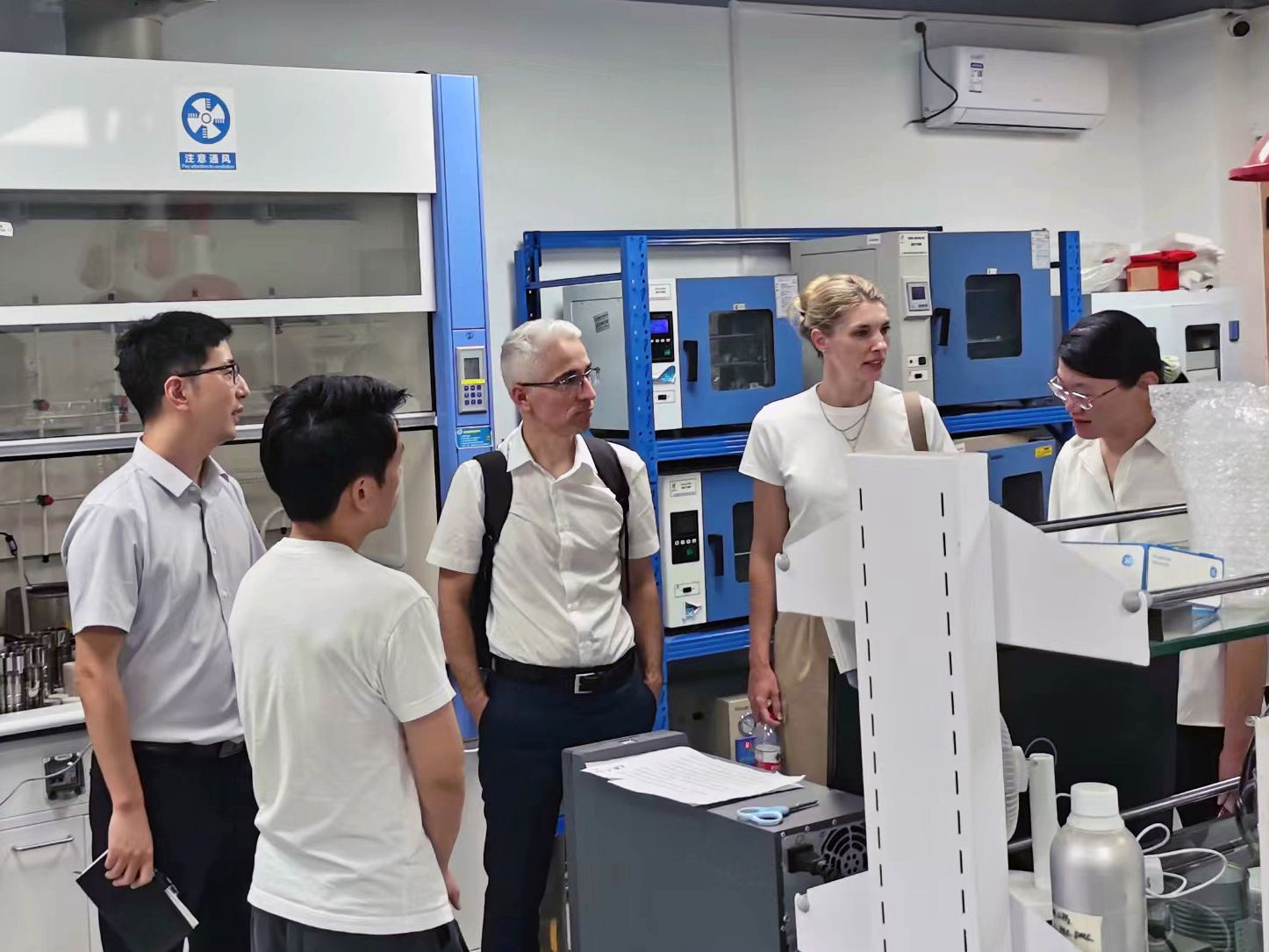 特聘院长丁传凡、党委书记陶娟、副院长周明炯、副书记尹慧热情接待到访来宾并座谈交流。