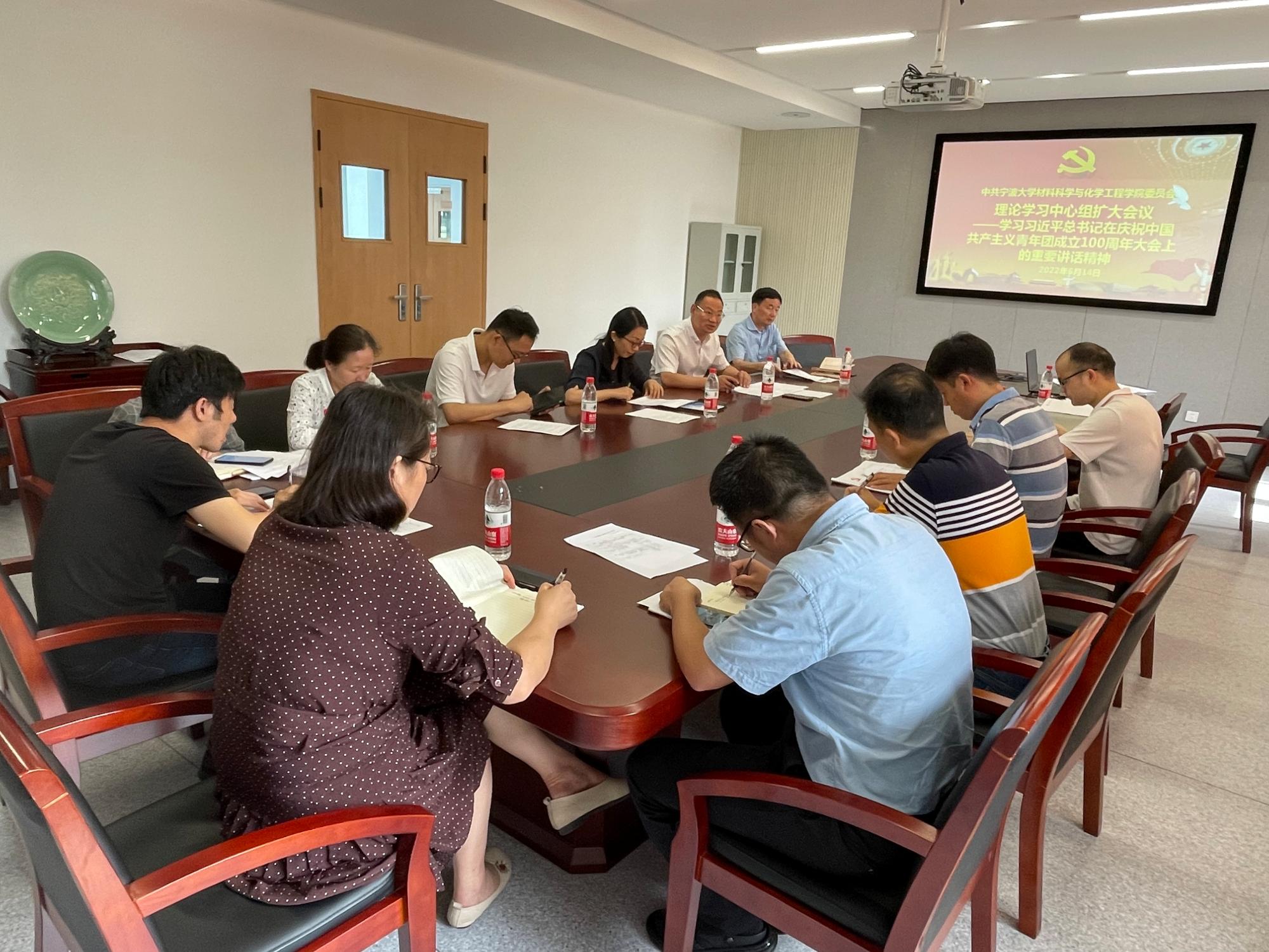 6月14日上午,材化PG官方电子网 党委在北区慎思楼1227会议室召开理论学习中心组扩大会议,专题学习习近平总书记在中国人民大学考察时重要讲话精神及习近平总书记在庆祝中国共产主义青年团成立100周年大会上的重要讲话精神。院党委书记罗云杰主持会议并讲话。
