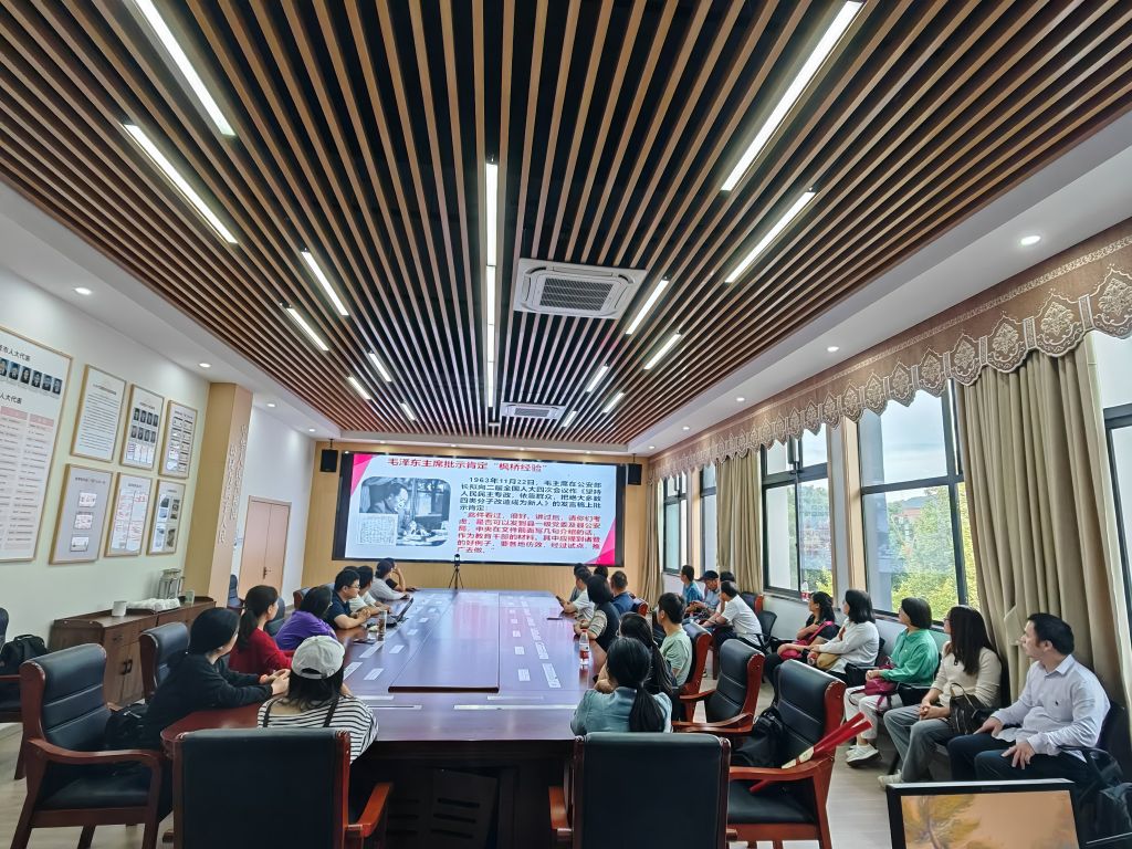 因枫桥镇的枫桥经验陈列馆闭馆,党员教师一行赴赵家镇学习枫桥经验,赵家镇党委副书记王岳锋为全体党员教师详细介绍了枫桥经验的发展历程、具体内容和实际效果。他说,今年是毛泽东同志批示学习推广“枫桥经验”60周年暨习近平总书记指示坚持发展“枫桥经验”20周年。“枫桥经验”发源地枫桥镇,以体现浙江特色的中国基层治理培训、研究、宣传中心为定位,以坚持发展新时代“枫桥经验”为主要方向。“小事不出村、大事不出镇、矛盾不上交”,看似轻描淡写的一句话,实则非常考验基层党组织的“综合战斗力”。