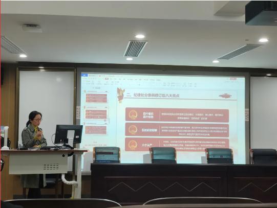 朱燕回顾《中国共产党纪律处分条例》(以下简称条例)的形成和历次修订,指出《条例》制定的重大意义和修订后八大亮点,逐条解读《条例》内容,通过违反条例的典型案例分析,明确哪些是不能碰的“高压线”。通过学习,党员们全面学习领会了《条例》内容与精神。党员们纷纷表示,一定要将《条例》各项要求充分与实际工作相结合,时刻自行自查,自觉增强纪律意识、廉洁意识,做到知敬畏、存戒惧、守纪律、重规矩,发挥一名共产党员应有的模范带头作用。