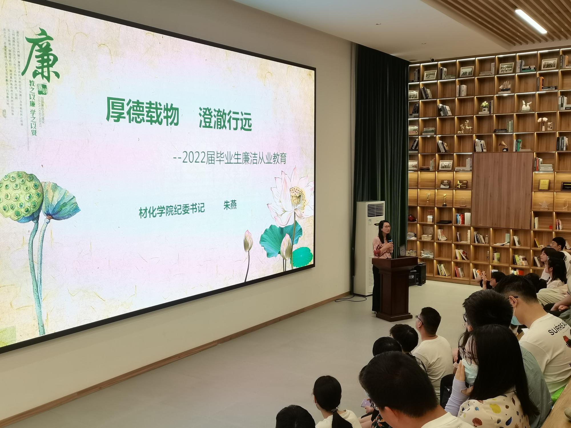 纪委书记朱燕以《厚德载物 澄澈行远》为题给2022届的毕业生带来了一场别开深面的廉洁从业教育微党课,希望毕业生们不断加强自我品德修养,因为厚重的德行才能像大地一样承载万物;同时要做一个做事光明磊落、内心坦坦荡荡的人,只有澄澈的人才有一颗强大的内心,未来才能走得远,并勉励毕业生规划好自己的人生,书写自己的人生作品。