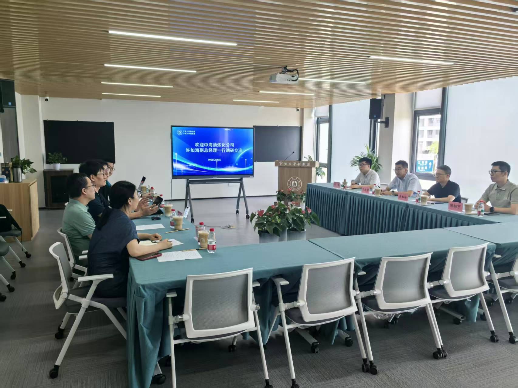 的最新科研成果。中海油炼化公司则介绍了技术需求,双方就未来合作方向、校企合作的新机遇与新模式等进行了深入探讨。此次调研活动不仅加深了双方的了解与信任,更为未来的合作奠定了坚实基础。双方表示,将进一步加强沟通与协作,共同推动产学研深度融合,为行业技术进步和产业升级贡献力量。