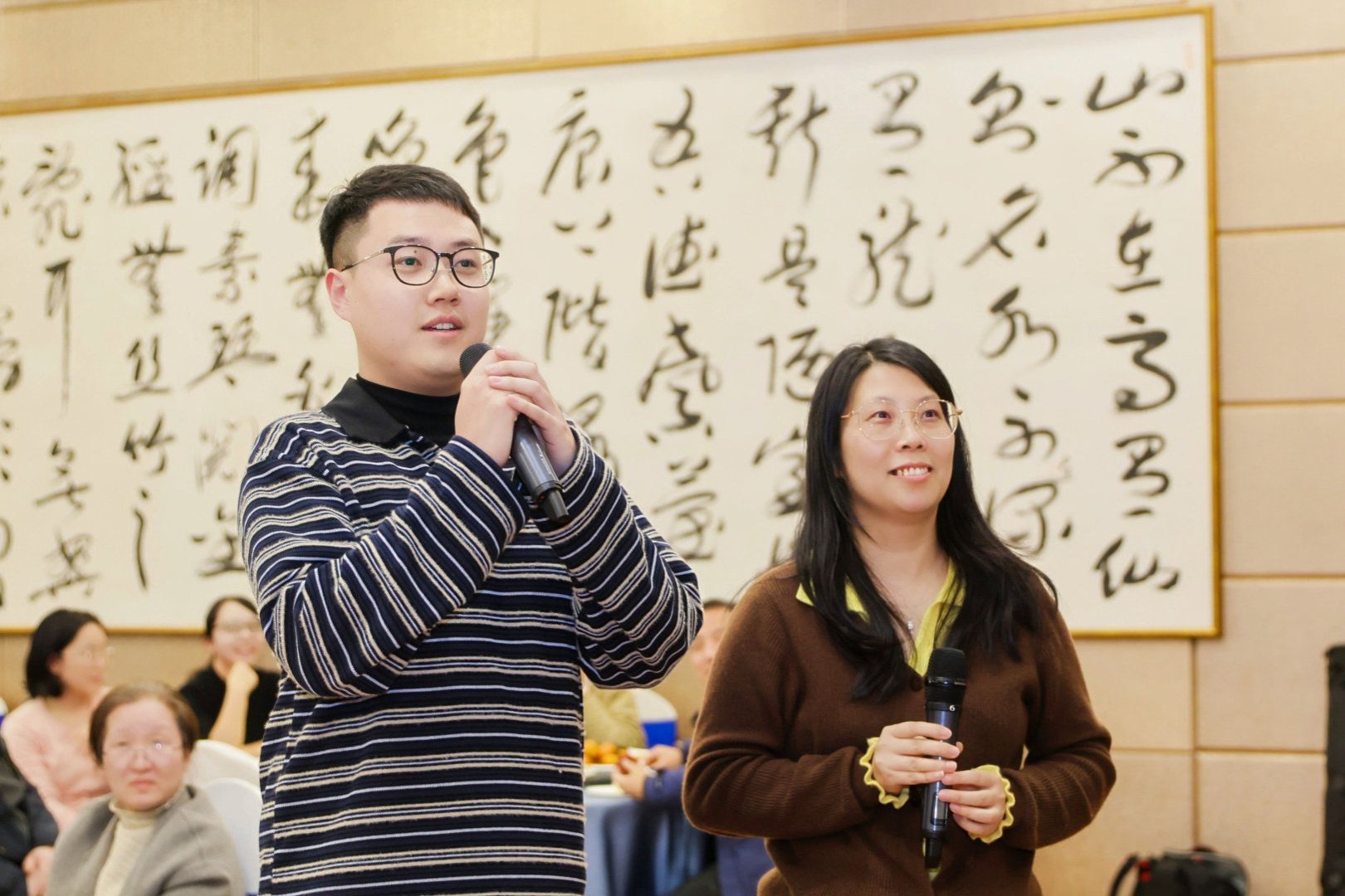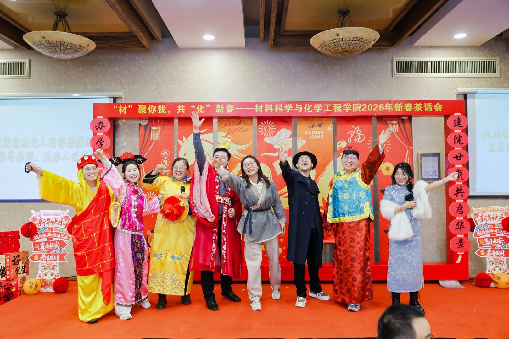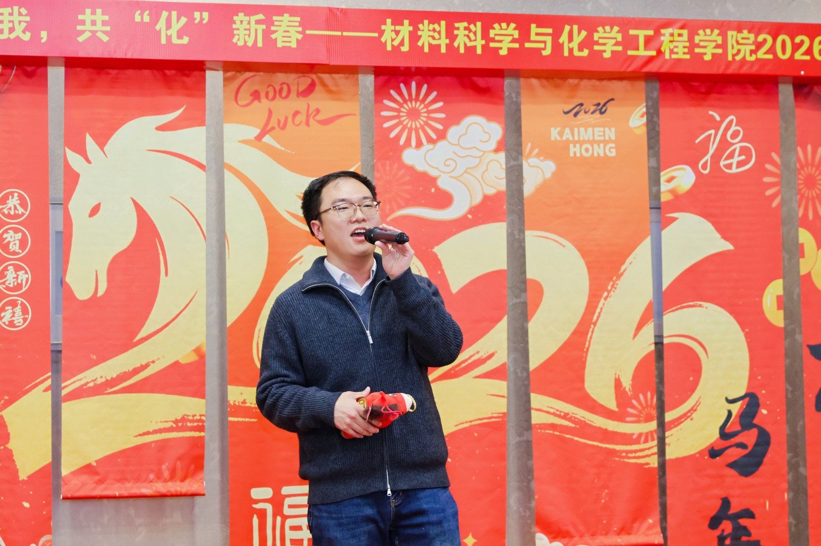 实验室安全工作,寓教于乐,妙语连珠间引发全场共鸣,掌声不断;化学系薛金鹏老师深情演绎《七里香》,婉转的歌声勾勒出浪漫意境,让现场沉浸在温柔的氛围中;化工系金花和魏雅宇老师带来的改编配音节目《身临其境》结合老师们的科研日常,笑点拉满,赢得阵阵喝彩;质谱院李俊晖老师演唱的《平凡之路》治愈有力,唱出了科研工作者坚守初心、砥砺前行的心声;全体学工人员献上的语言类节目《好戏开唱》形式新颖、编排精巧,展现了学工队伍的凝聚力与精气神,将现场气氛推向高潮。