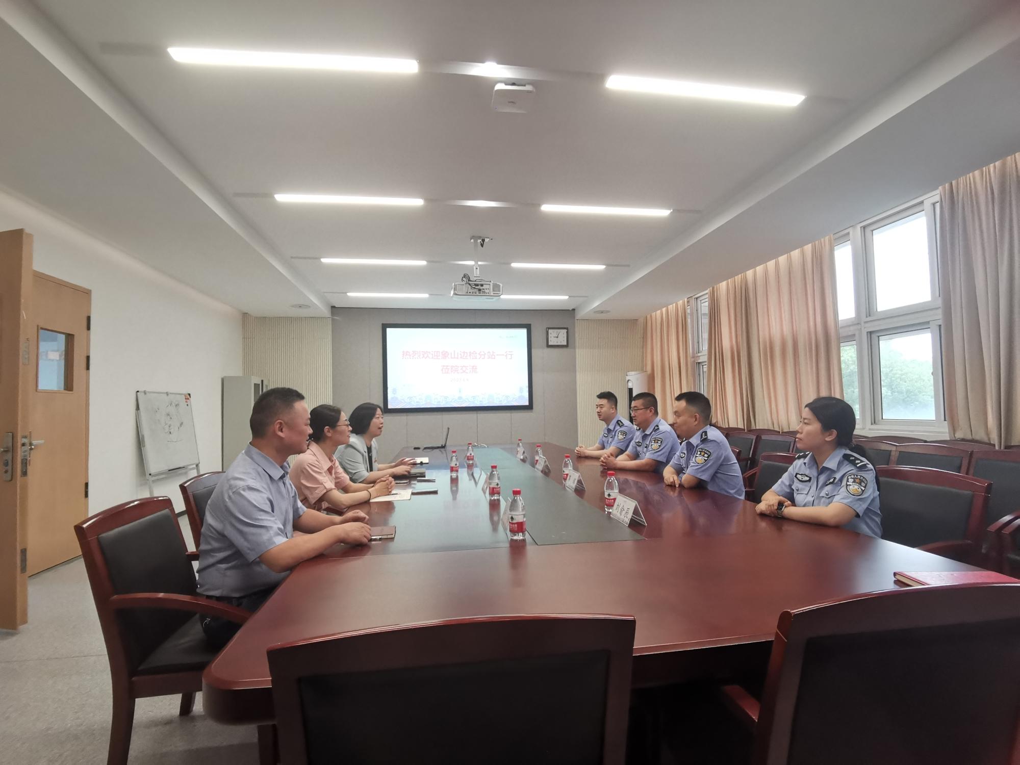 6月6日上午,象山边检分站党支部书记余胜利、站长蒋辉一行到材化PG官方电子网 交流,PG官方电子网 党委书记陶娟、副书记尹慧以及相关教师参与座谈。