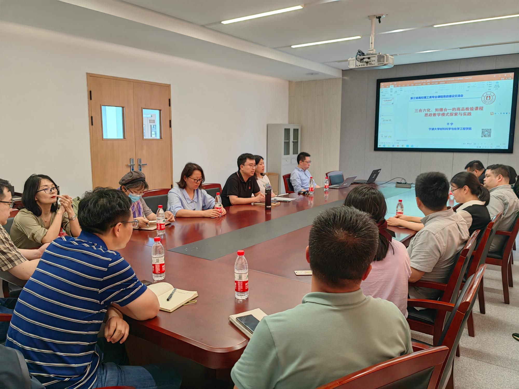 将投入资源,帮助各位教师开始教学建设工作,着力培育各项各类教学成果。干宁教授结合自己的《商品检验》思政课程建设心得,详细分享了一流课程等教学成果培育的一手经验。谢洪珍副教授分享了对慕课制作、教师技能竞赛等方面的心得与技巧。与会教师也积极向两位教师提问,交流气氛融洽,分享会取得了圆满成功。