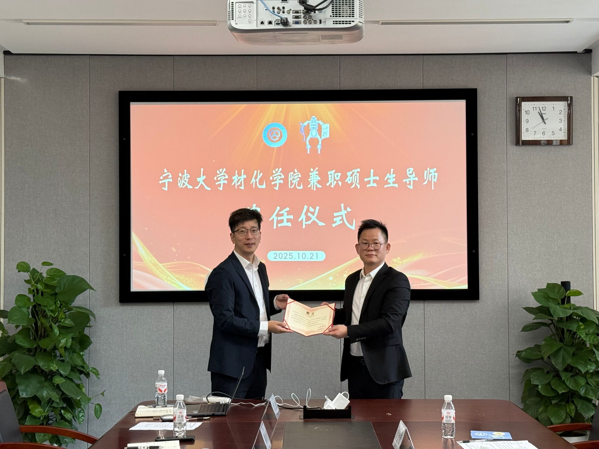 -赛维达材料与化工专业实践基地”铜牌,并向冯平颁发兼职硕士生导师聘书。