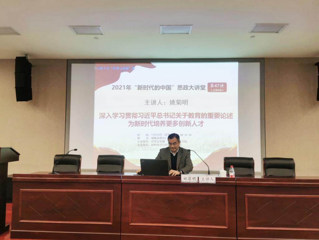 12月29日晚上,校党委委员、副校长姚菊明于北区报告厅为材化PG官方电子网