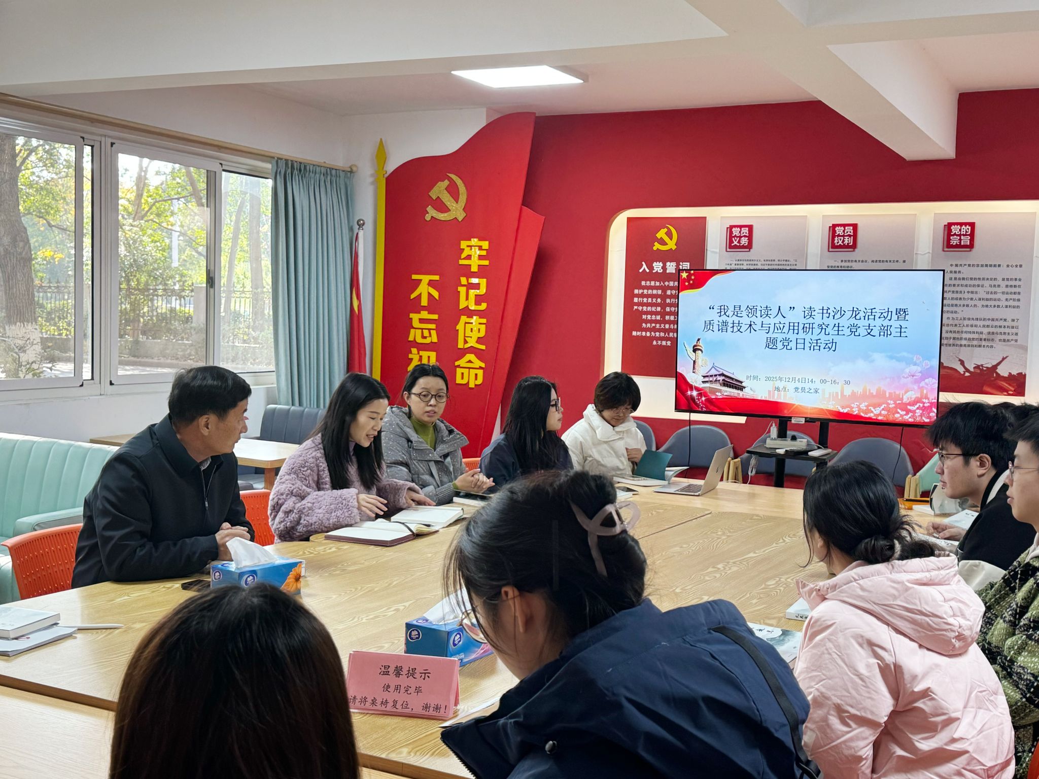 本次“我是领读人”读书沙龙坚持以党建为引领、以阅读为纽带,推动科研学习与人文素养同步提升。不仅丰富了支部组织生活的形式与内涵,也进一步强化了党员同志的服务意识与跨学科思维能力。