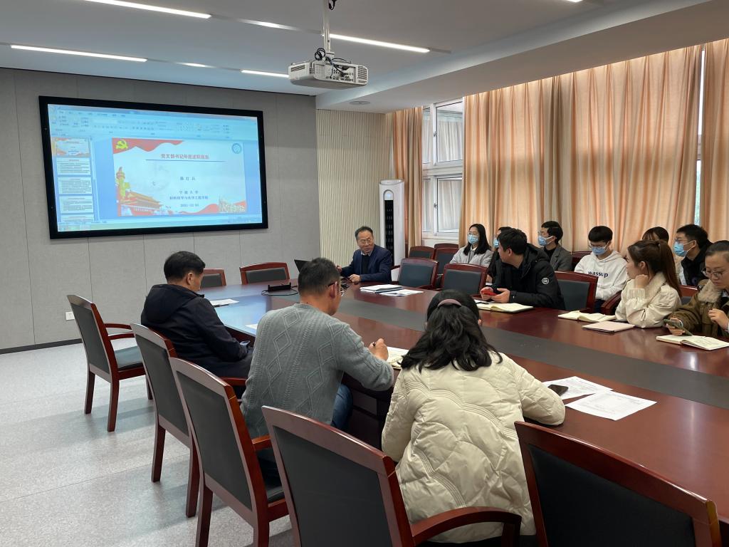 4个教师党支部、2个教职工党支部和12个学生党支部书记通过PPT展示进行现场述职,汇报各支部2021年度落实“三会一课”情况、开展党员活动等支部党建工作,以及各支部工作特色亮点与存在的不足。罗云杰对述职的党支部书记逐一点评,他强调党支部书记作为基层党务工作者,一定要扎实落实推进基层党建工作,提炼亮点凝聚特色,切实发挥好党员的模范先锋作用。