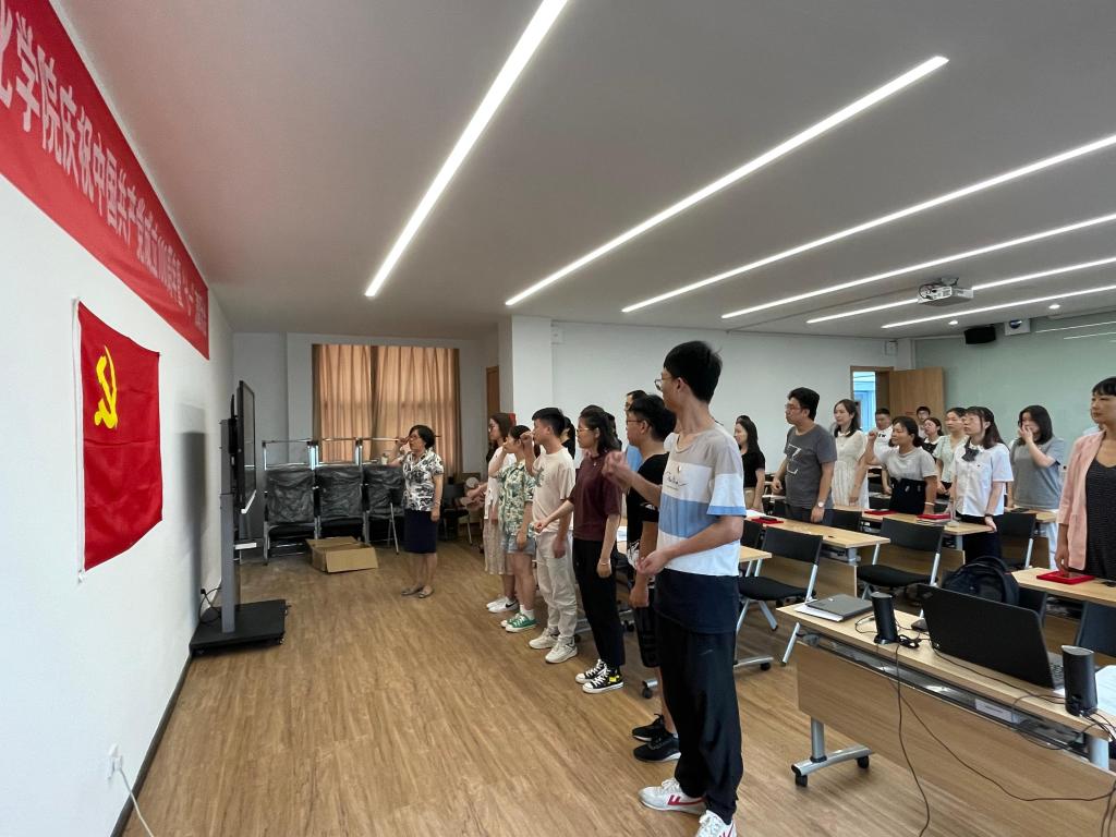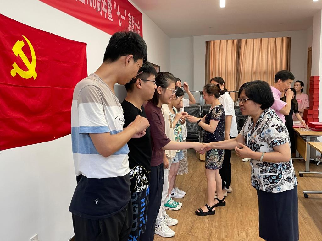 优秀党员和老党员为其佩戴党徽,他们表示这是一种鞭策,也是一种激励;是一种精神的传承,也是一种奋斗的延续。党委书记陈玉涓带领所有参会人员重温入党誓词,全体党员面向党旗,庄严宣誓,检视入党初心,接受党性洗礼。