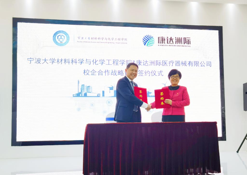 与康达洲际医疗器械有限公司达成合作意向,王德纯代表公司、陈玉涓代表材化PG官方电子网