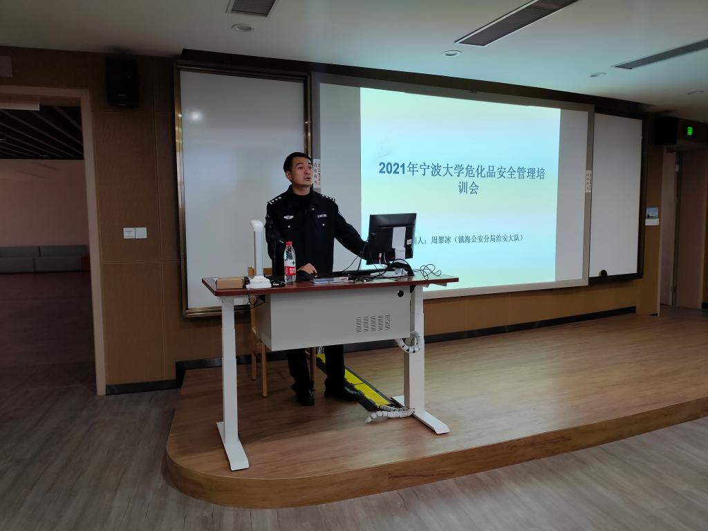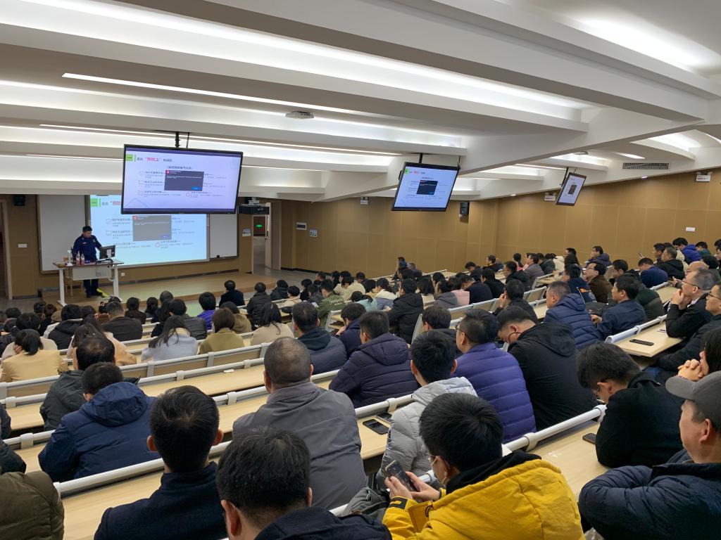 为了进一步提高实验室安全管理,切实增强实验室安全责任意识和事故应急处置能力,营造良好的实验室安全氛围。11月22日中午,由资产与实验室管理处主办,材化PG官方电子网 承办的实验室安全工作管理专题讲座在PG官方电子网 北区2号教学楼306室顺利举行。本次活动特别邀请了宁波市公安局镇海分局治安大队周黎冰警官和江北区消防救援大队刘慧明副大队长分别就危险化学品安全管理和消防安全做了精彩的讲座。本次讲座采用线下和线上直播相结合的方式,现场到会人数约150人,除了材化PG官方电子网 全体教师外,还有PG官方电子网 各PG官方电子网 和研究院的实验中心主任、安全员和危险化学品管理员;同时,材化PG官方电子网 的研究生和本科生共831人通过钉钉线上参与到本次讲座。