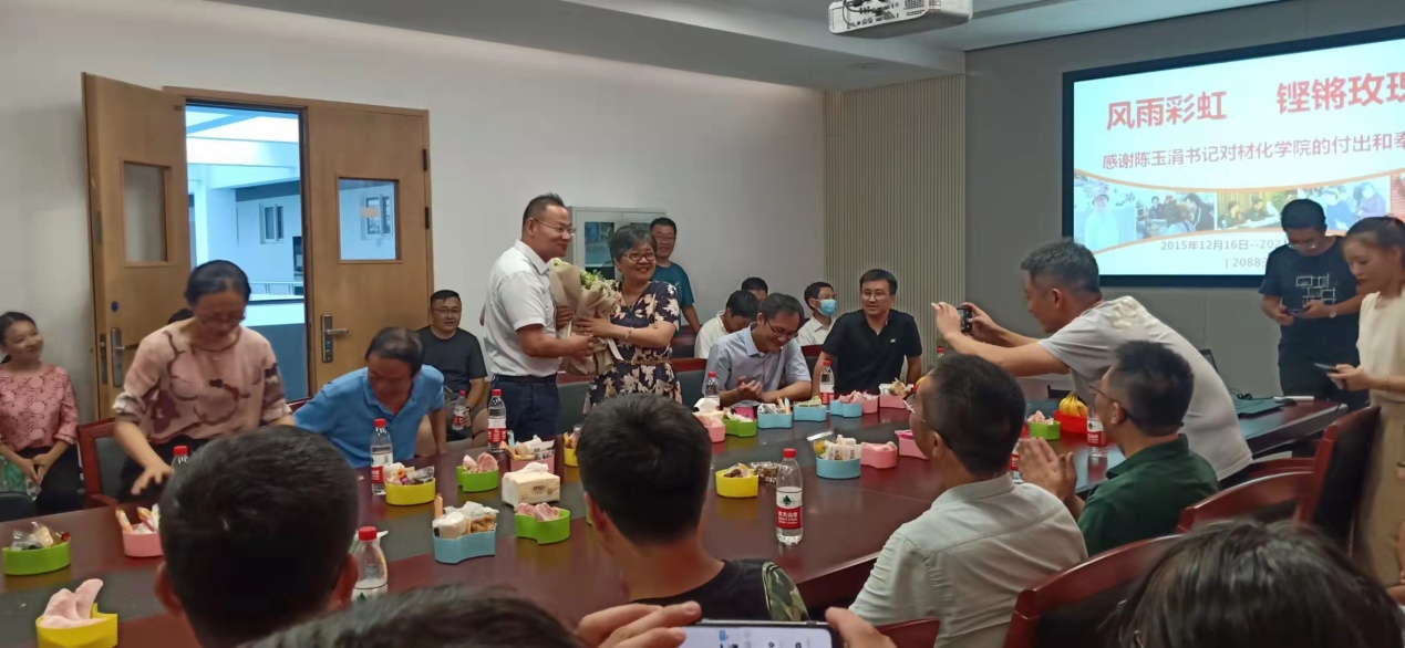 227会议室来了很多人。当陈玉涓出现在会议室门口时,大家与她亲切相拥合影。工会副主席毕文超主持了欢送仪式。首先是播放主题为“风雨彩虹、铿锵玫瑰”的VCR回顾陈书记在材化PG官方电子网