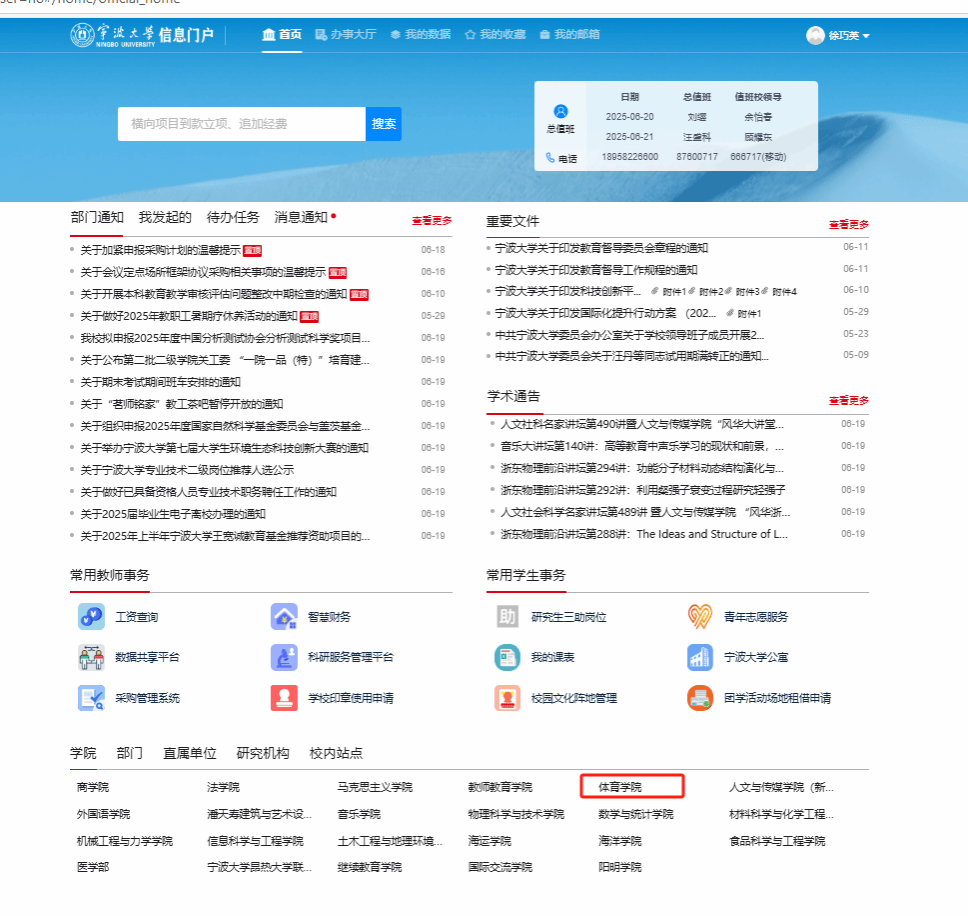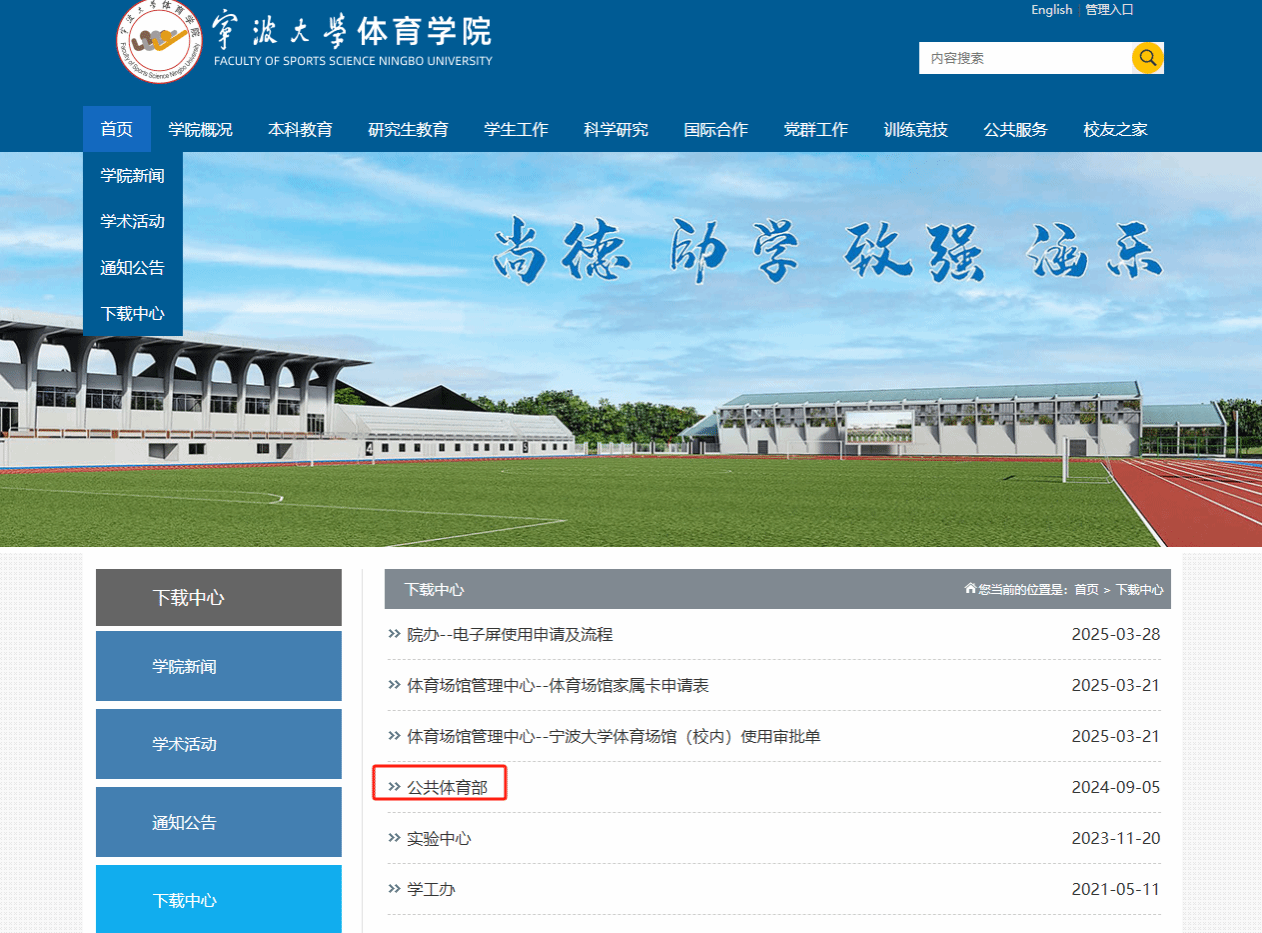 点击网页正中间“公共体育部”: