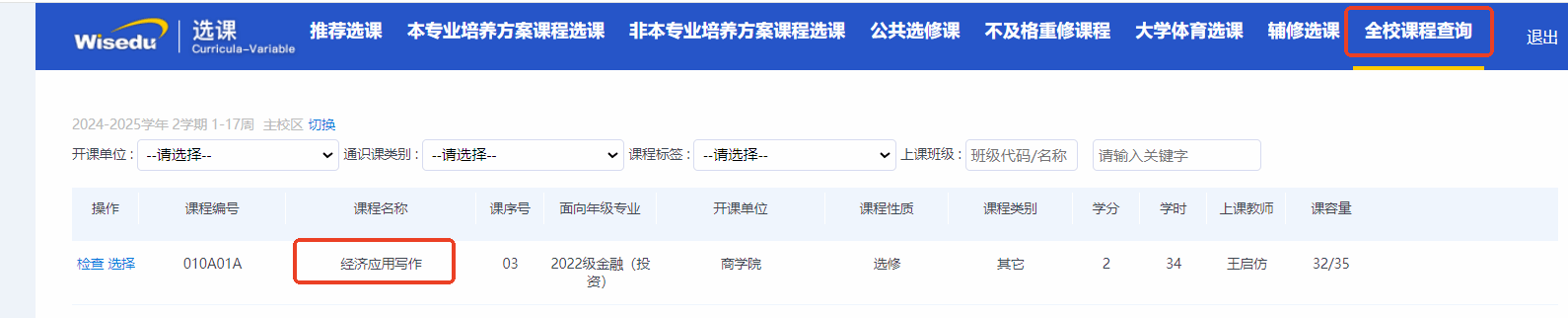 二、选课结果查询
